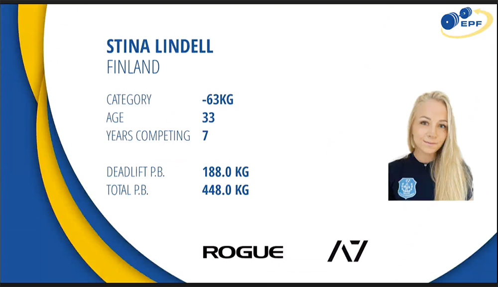 Stina Lindell tävlade under kvällen på EM i klassisk styrkelyft som avgörs i det närmaste på hennes bakgård, närmare bestämt i Västerås. Som vanligt var det damernas 63kg klass som gällde för henne och totalt sjutton lyftare kom till start i klassen.