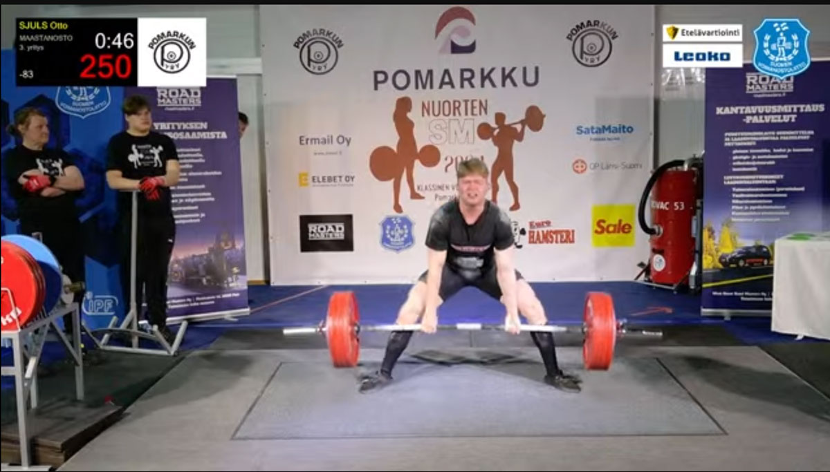 Femton lyftare kom till start och Otto, som låg femma i förhandsanmälniungarna, inledde starkt med att sätta nytt personbästa i knäböj då han klarade 237,5kg i sitt sista lyft, fem kilo bättre än hans resultat på J-NM för mindre än en månad sedan och fem kilo över hans eget tidigare åländska juniorrekord.