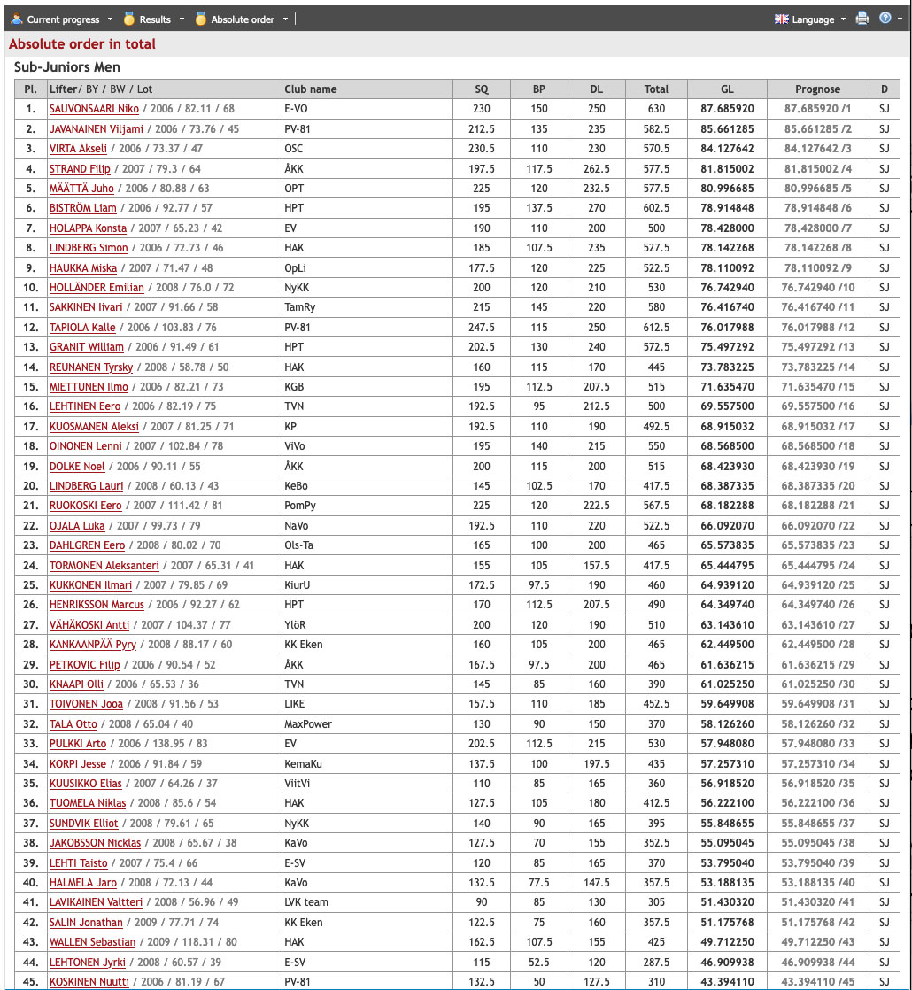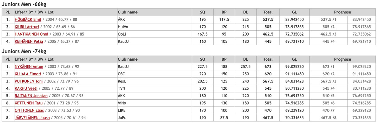 Informationen finns även på Finska Styrkelyftsförbundet hemsida (på finska)
