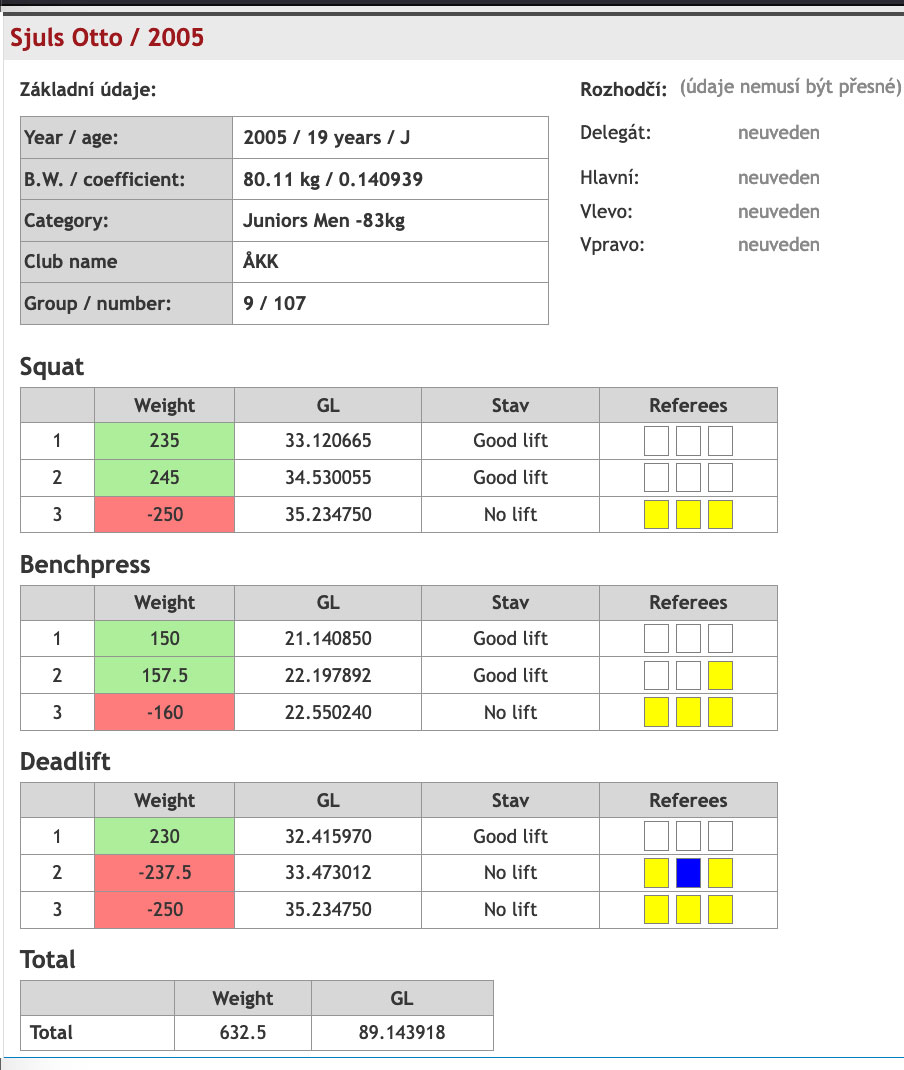 Dagens andre debutant var Andrei Moise, född 2005, han tävlade i 83kg klassen U23 och också han satte alla sina nio lyft med serien 120kg i knäböj, 80kg i bänkpress, 150kg i marklyft och 350kg totalt. Vi hoppas att också han fick blodad tand och dyker upp på tävlingslavan igen snart!