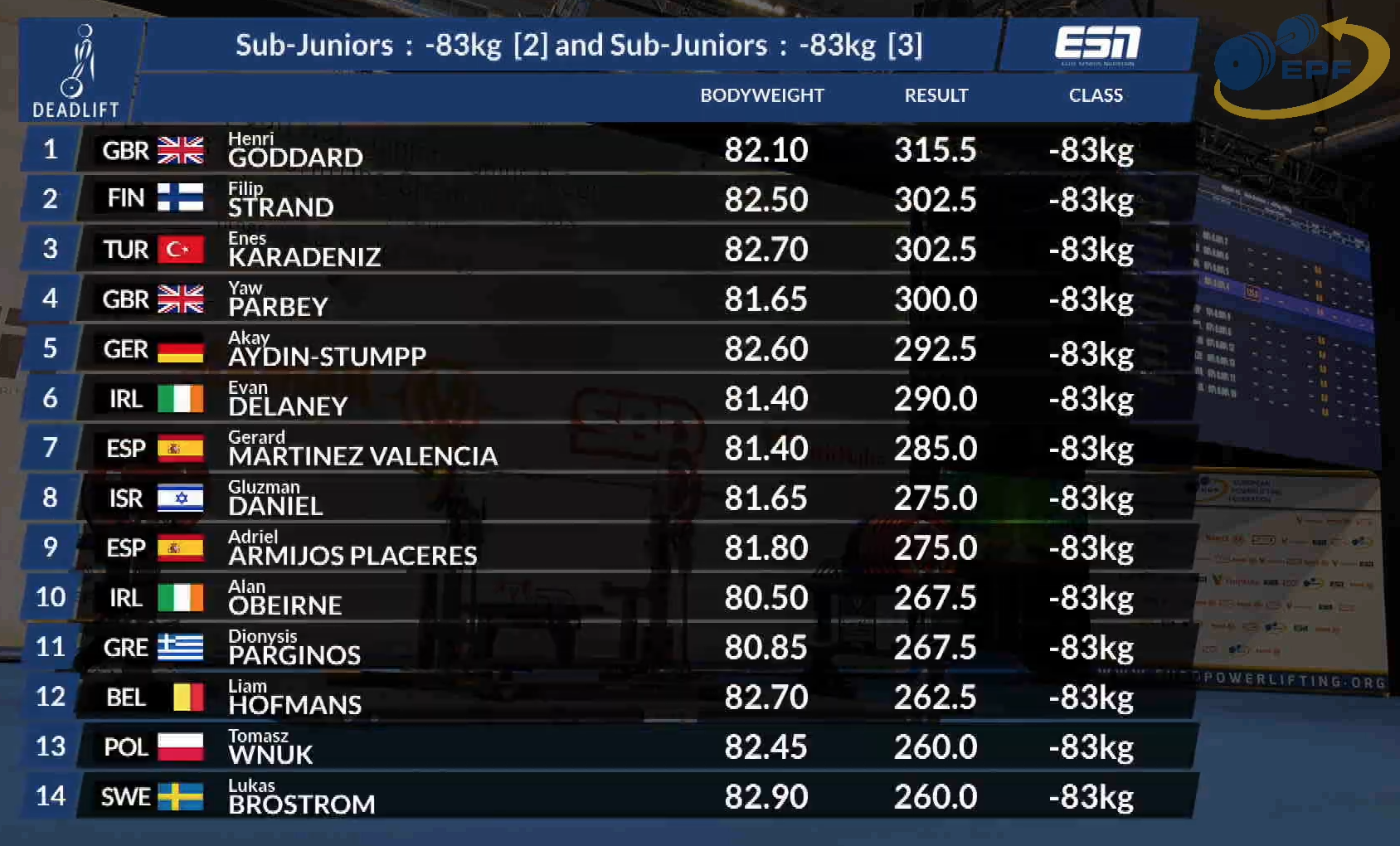 Efter sin tävling blev det en spänd väntan för Filip på att A-gruppen i samma viktklass skulle tävla. De vassaste lyftarna skulle göra upp om totalmedaljerna, men det fanns ju en chans till att Filips resultat i marklyft kunde ge honom en delgrensmedalj, vilket det gjorde! Hans 302,5 kg räckte till delgrenssilver. Delgrensguldet gick på 315,5 kg (nytt världsrekord i M18) till Storbritannien medan delgrensbronset gick till Turkiet på samma vikt som Filip, men på tyngre kroppsvikt. Sist och slutligen räckte hans totalresultat till en tionde plats i viktklassen bland 23 lyftare på startlistan.