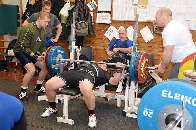 Jesper Svanelt, Hannes Immonen och Anton Häggblom tävlade i 93kg klassen, alla tre gjorde symboliska vikter i knäböj men i bänken siktades det på rekord. Jesper gick in direkt på 168kg för att försöka plocka Björns rekord som låg på 167,5kg. Han bommade hårfint i sina två första lyft men lyckades sedan pressa vikten hela vägen i sista försöket och rekordet var hans. Hannes bättrade på sitt eget SFI-rekord för juniorer då han klarade 137,5kg i sitt sista lyft. Anton hade siktet inställt på att klara 100 Wilkspoäng i bänken, det vill säga den poäng som beräknas genom förhållandet mellan kroppsvikt och resultat samt en definierad Wilks-koeficient. Han vägde in på 86,45kg vilket innebar att han måste klara 155kg för att komma över 100 poäng. Han klarade 152,5kg i andra lyfte och pressade också 155kg sista lyftet men det underkändes av domarna så nu stannade han på 99.41poäng vilket innebär att han puffar ner Matias Sommarstörm från 30-bästa listan i bänk.